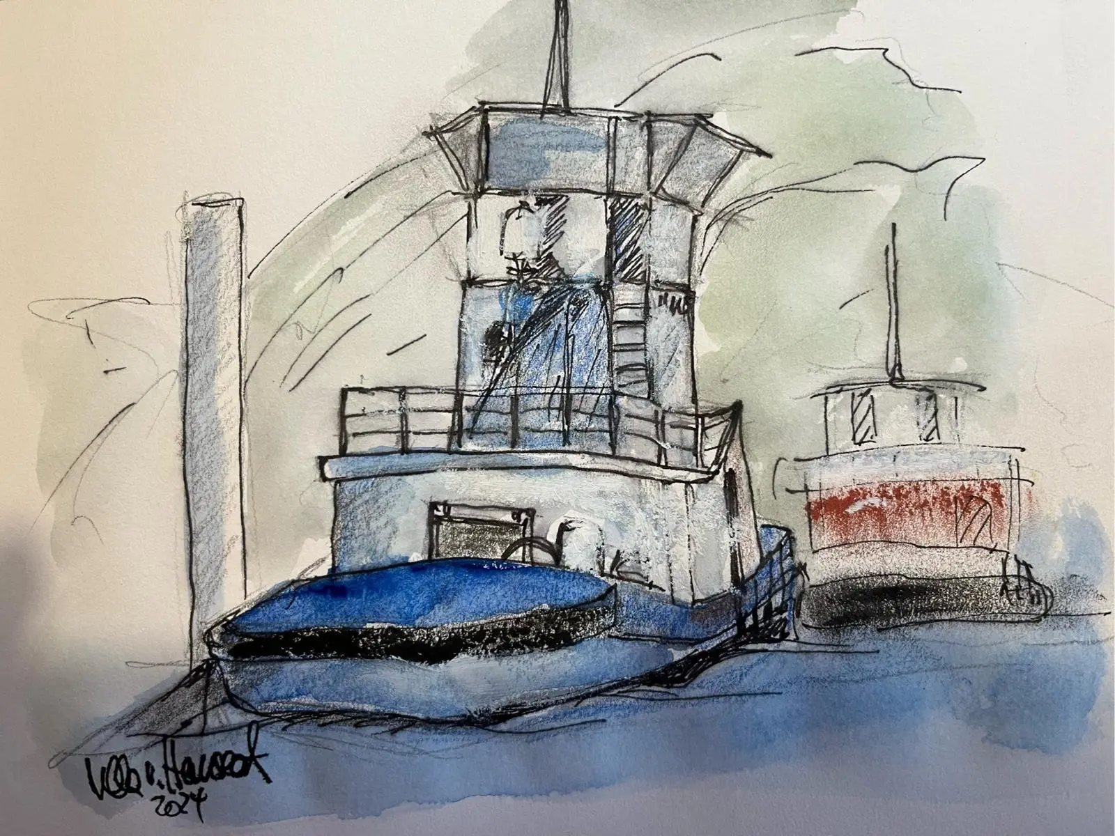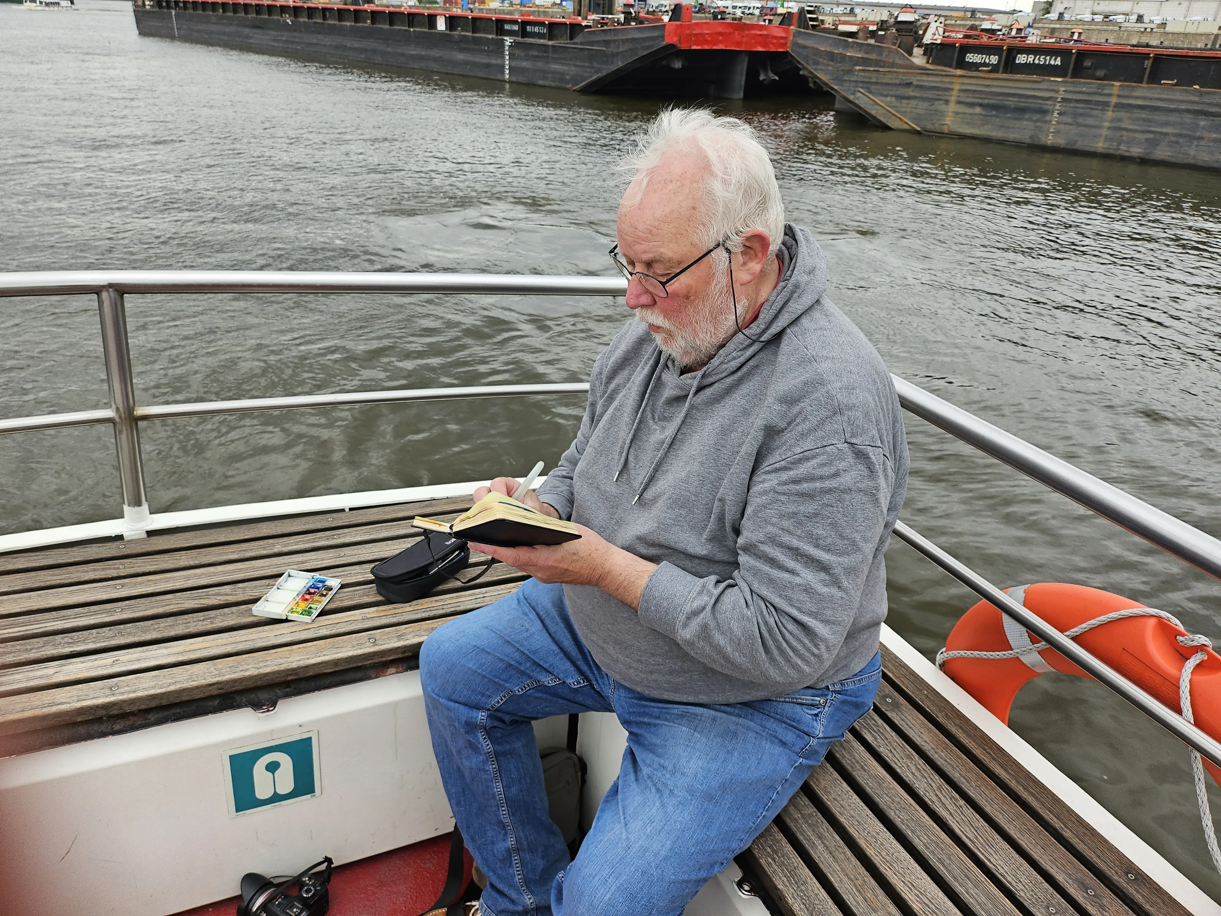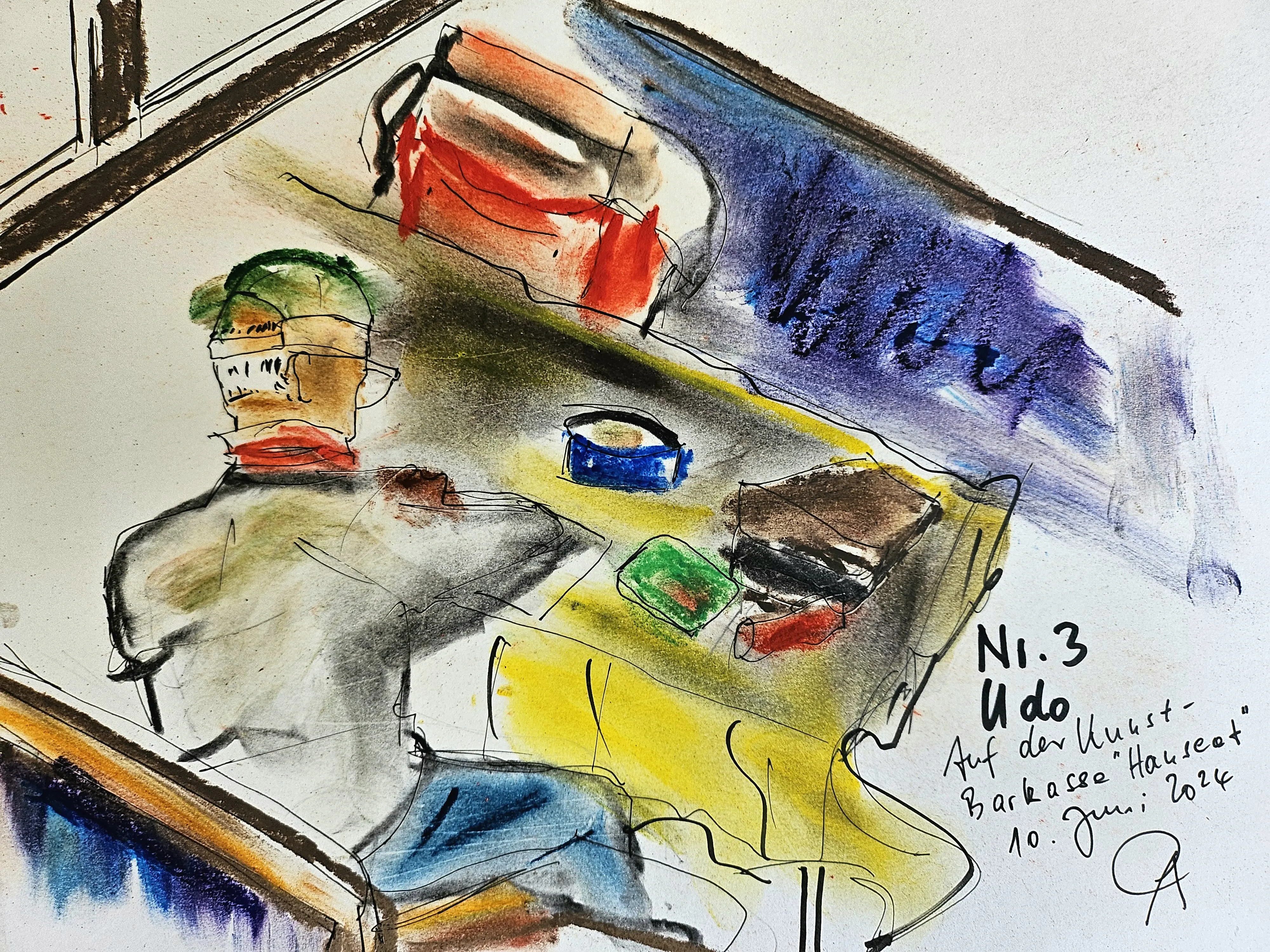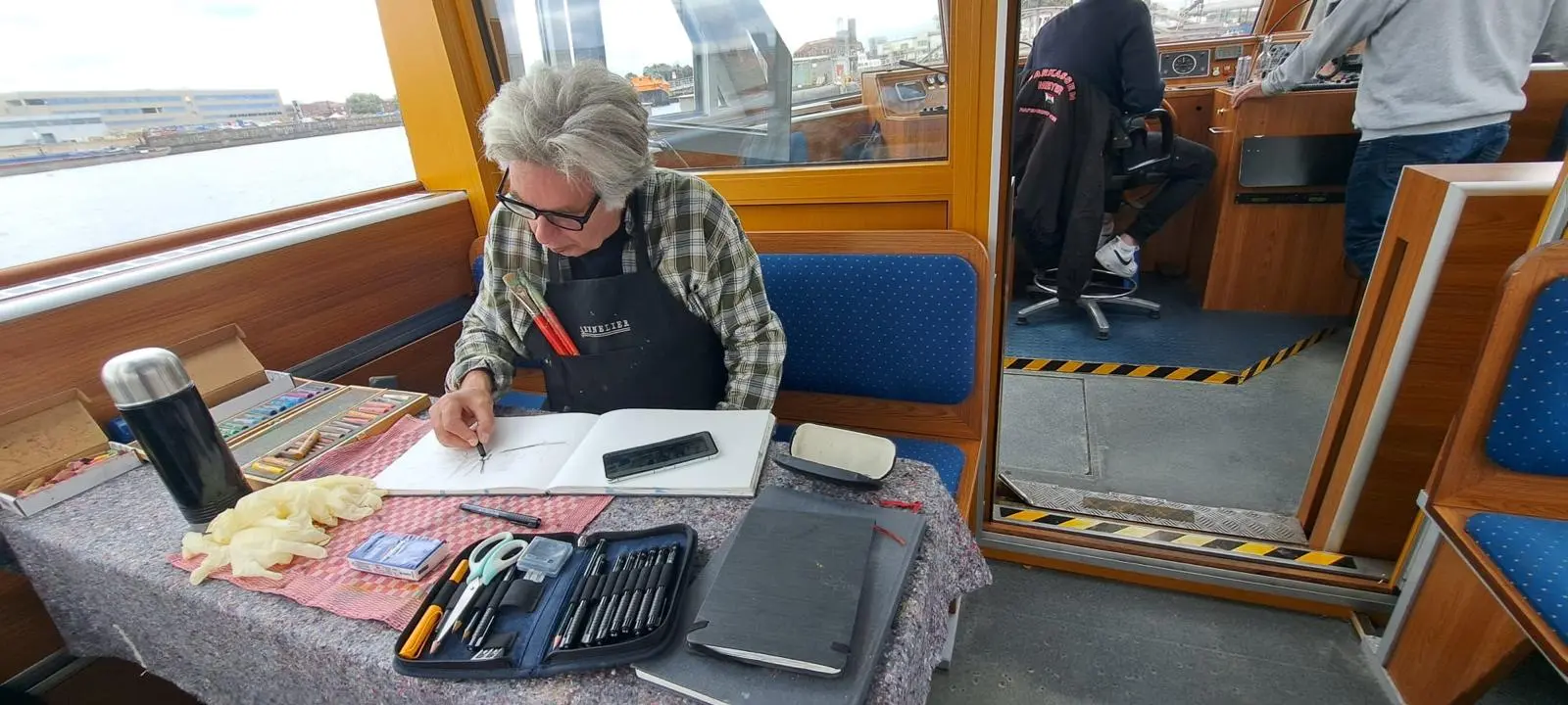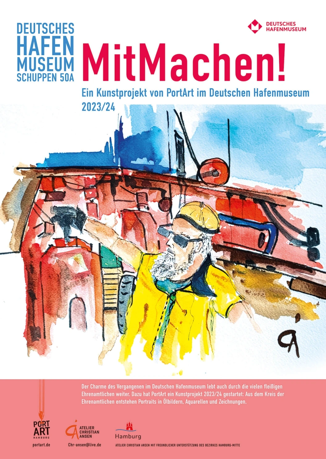 Seit ich laufen kann bin ich mit Stift und Pinsel unterwegs, um die Themen, die mich faszinieren, festzuhalten. Die Liebe zum Meer und zu Schiffen trieb mich vom Rheinland an die Küste und an Bord der Bark „Alexander von Humboldt“. Über die Zeit an Bord bin ich auch beruflich im Schiffbau angekommen, habe Bootsbauerin gelernt und auf verschiedenen Werften gearbeitet. Heute bin ich im Deutschen Hafenmuseum tätig und habe viel Freude an der Verbindung von Hafen und Kultur. Durch die Mitarbeit bei PortArt in meiner Freizeit kann ich der Kunst wieder mehr Raum in meinem Leben geben und mich im Team künstlerisch weiterentwickeln.