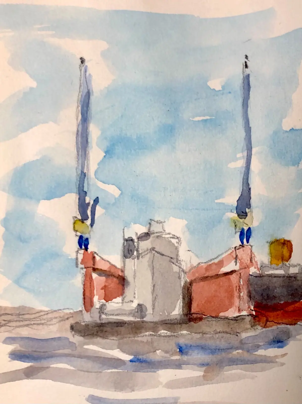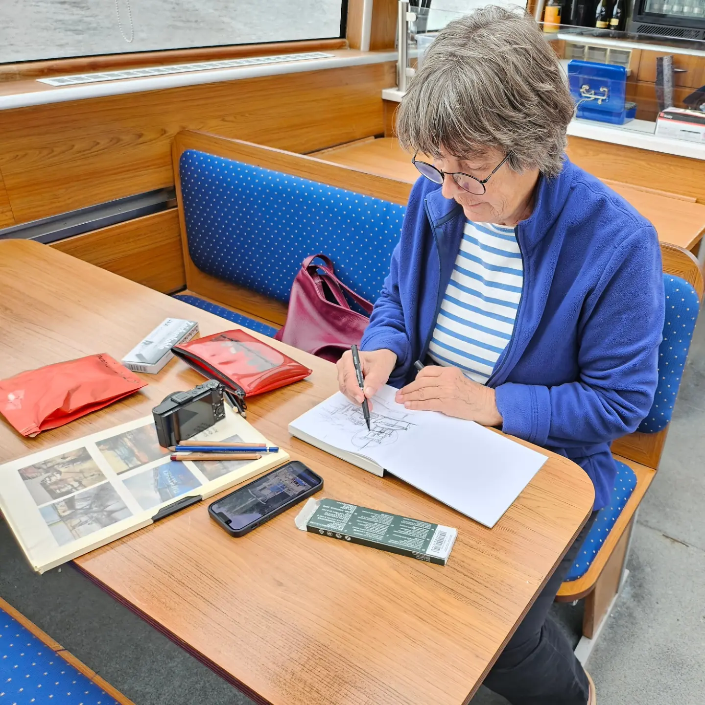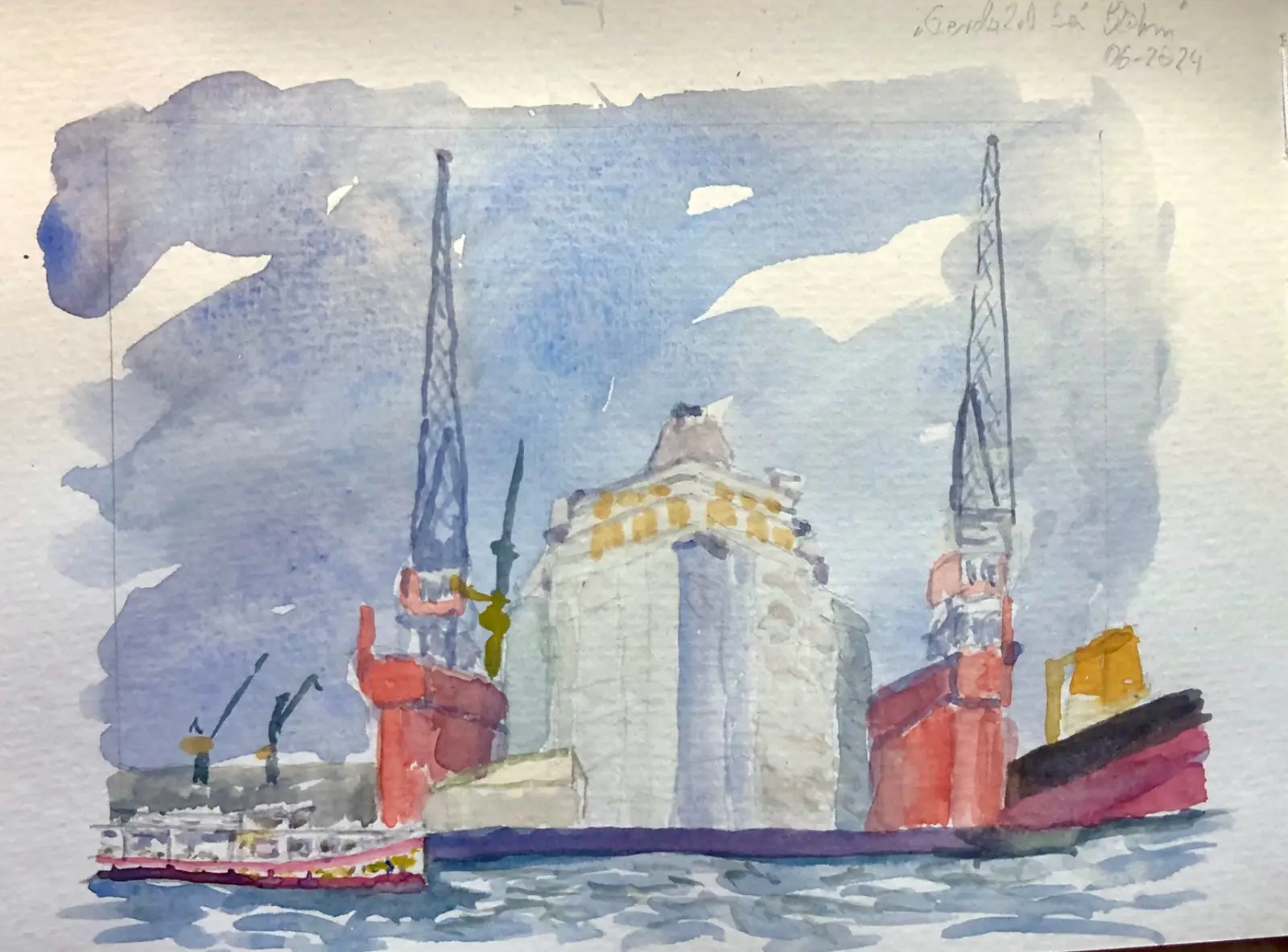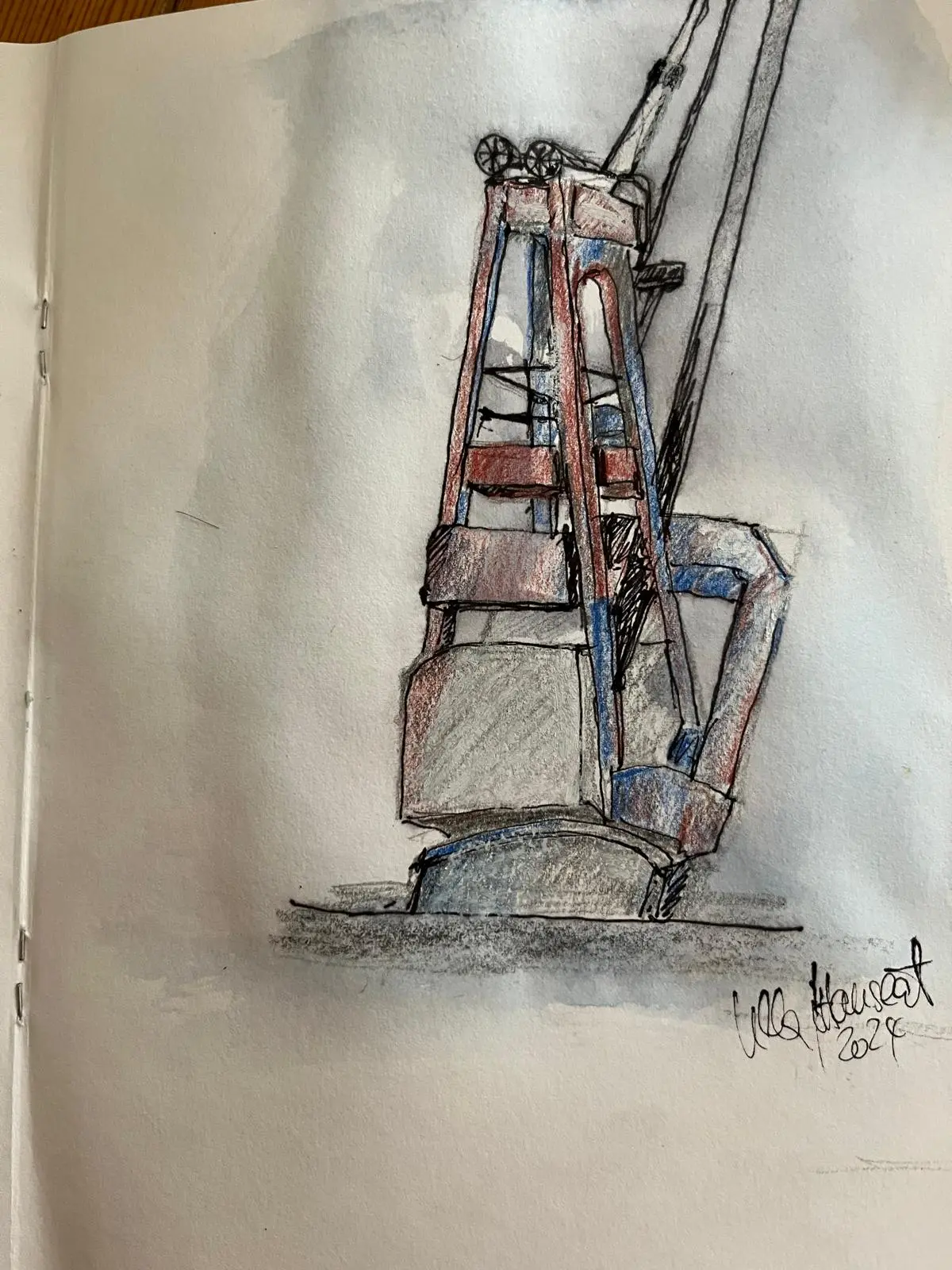 Unterwegs zeichne ich hauptsächlich, gerne auch mit Buntstiften. Daraus entstehen dann, wenn ich die Zeit dafür finde, Aquarelle und manchmal auch ein Ölbild. Seit 15 Jahren drucke ich Radierungen. Dank Jens Rusch hat mich die Leidenschaft für Farbradierungen von mehreren Platten gepackt und wird mich auch nicht mehr loslassen….